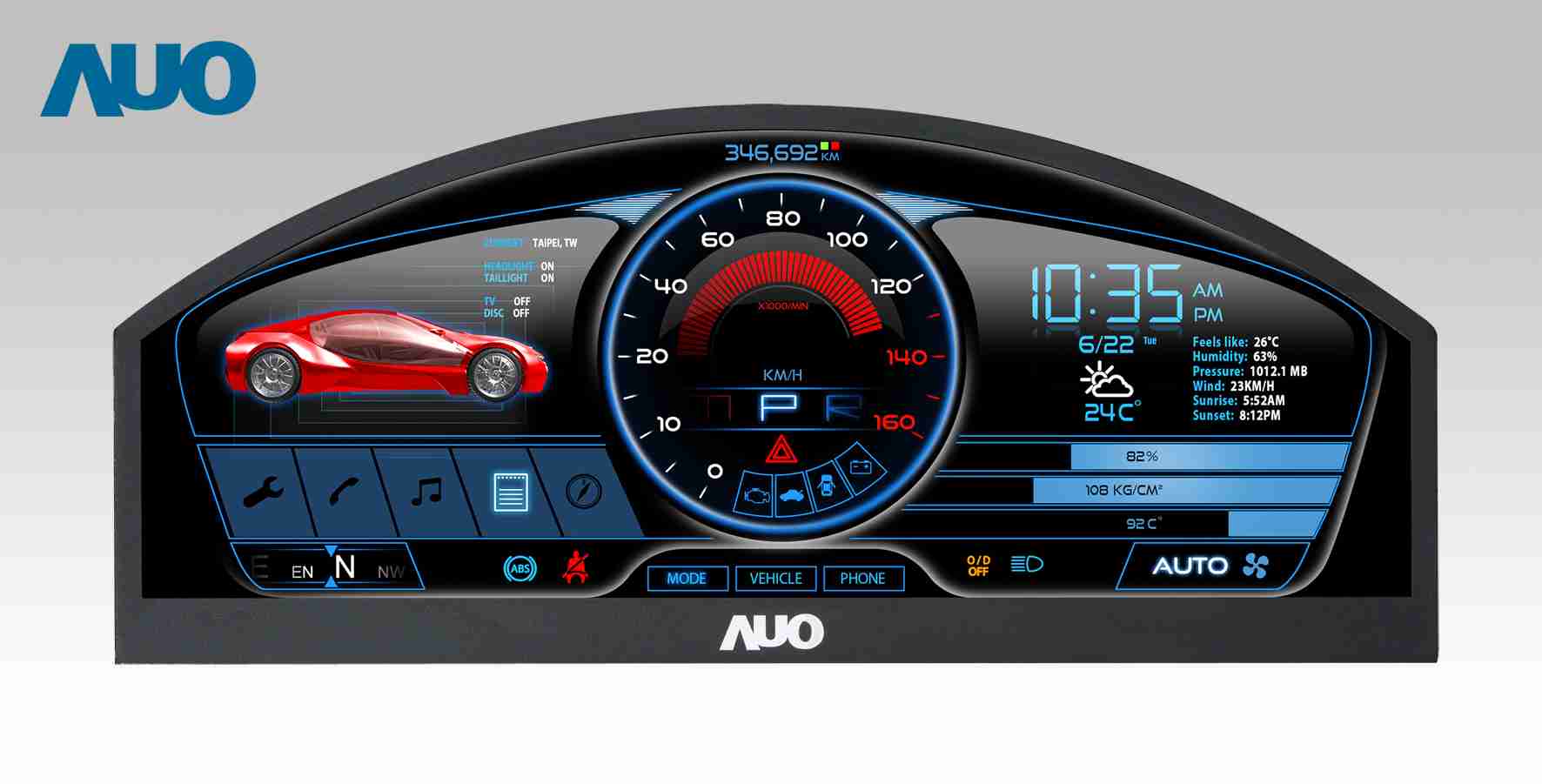 银河集团 12.3吋超高解析异型切割车用面板,,,拥有流线外观及精细画质